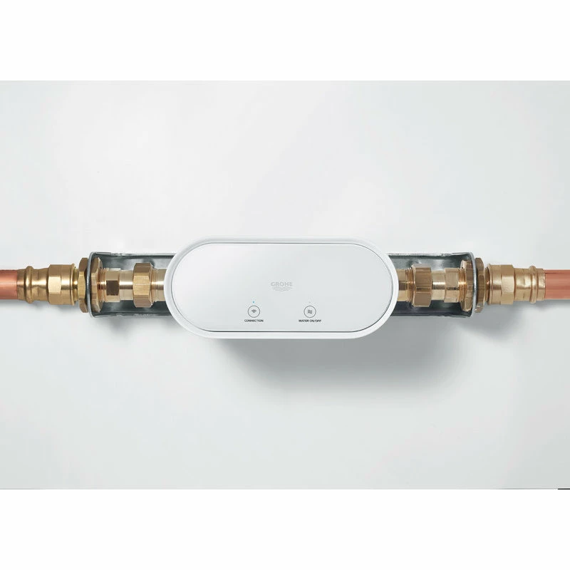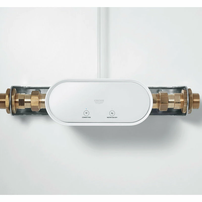 The GROHE Sense Guard system monitors humidity and temperature, detects water leaks, alerts you and shuts off water automatically. Enjoy intelligent & complete water security for your home, 24/7. For those homes that have a 1-in. pipe, install the GROHE Sense Guard Wall Mounting Set to convert the regular 3/4-in. outlet to fit a 1-in. outlet.