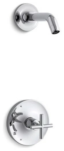 Purist faucets combine simple, architectural forms with sensual design lines. Featuring this modern, minimalist style, the Purist shower trim creates a sophisticated, unified look in your shower. This Purist shower trim includes a faceplate with cross handle and a showerarm with flange. Pair this trim with a Rite-Temp pressure-balancing valve, which maintains your desired water temperature during pressure fluctuations.