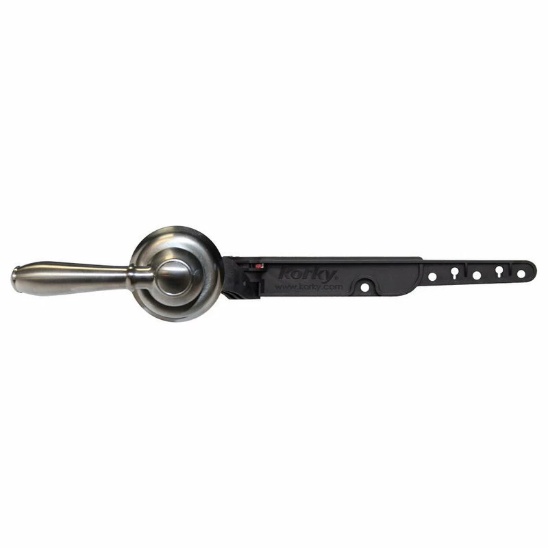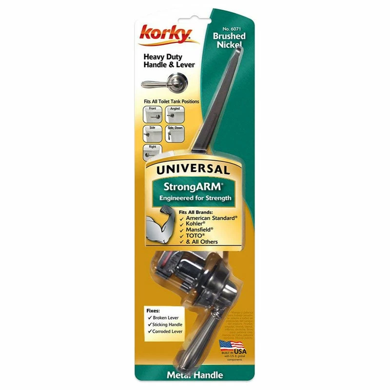 Designed to fit the majority of toilets, the Korky StrongARM Handle & Lever easily adjusts to fit all tank positions including: front, side, angle and down. Optimized for use with both 2″ & 3″ flappers and canister-style flush valves, the engineer grade material performs as well as brass and aluminum levers. Reinforced in common stress areas, the StrongARM lever is adjustable to eliminate the need to bend for fitment.