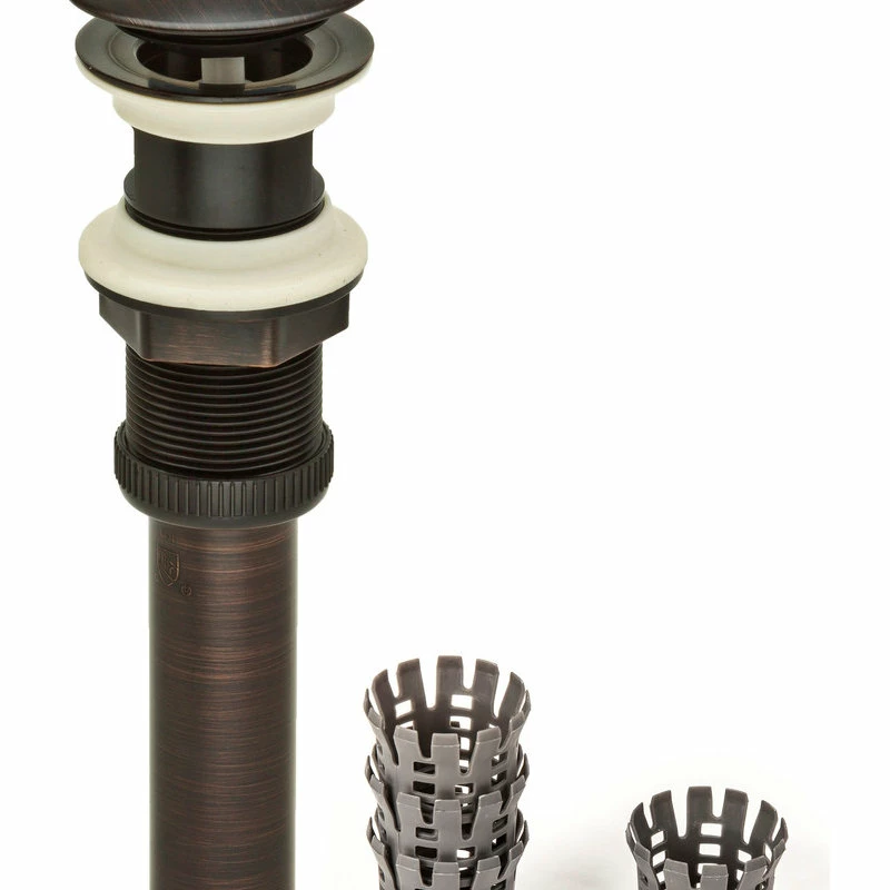 DecoDRAIN Push Closing (Umbrella Cap) Pop-Up Drain allows for a cost effective decorative option for open vanity or vessel sinks to match the finish of the faucet. Made from robust ABS never rusts unlike metal pop-up drains. Without overflow body for installation in sinks without overflow.Threaded Jumbo Cap design allows easy replacement to upgrade finish. Includes Hair/Jewelry catcher basket. Finishes Available CH, BN, PB, AB, ORB.