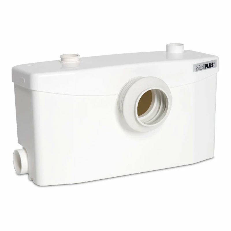 The Saniflo Saniplus is a macerator pump used to install a complete bathroom up to 15 feet below the sewer line, or even up to 150 feet away from a soil stack. The Saniplus macerator pump can handle the effluent from a toilet, sink, bathtub and shower.