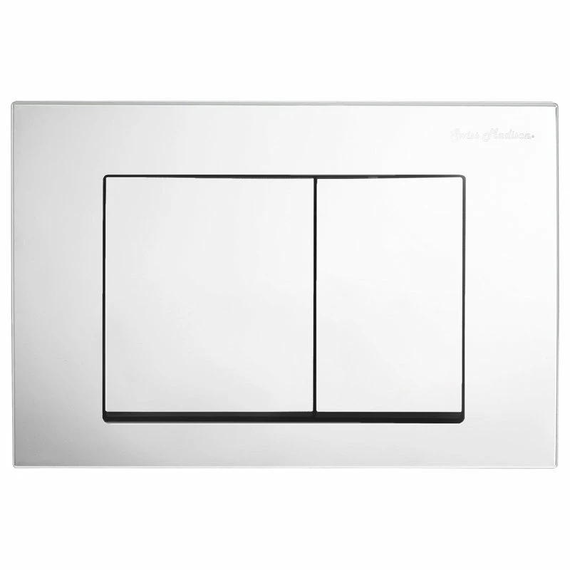Wall Mount Actuator Flush Push Button Plate in Chrome. This Actuator plate fits with all Swiss Madison concealed wall carriers for use with our wall hung and back to wall toilets. It features two buttons for dual flush compatibility.