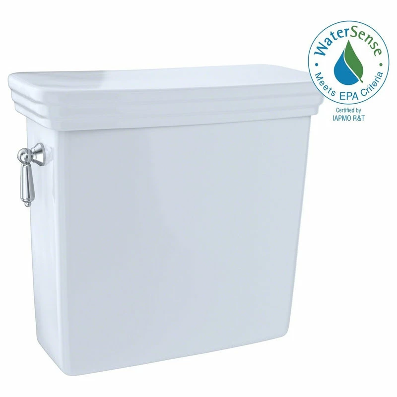 The TOTO Eco Promenade E-Max 1.28 GPF Toilet Tank is designed for use with the Promenade bowl. The Eco Promenade tank includes a tank to bowl gasket, tank to bowl hardware, and toilet bolt caps. The Eco Promenade tank features TOTO’s E-Max flush technology, featuring a 3 wide flush valve. This reliable, highly efficient combination generates a powerful cleansing flush while only using 1.28 gallons of water. The Eco Promenade tank comes equipped with a decorative left-hand chrome trip lever. The Eco Promenade tank meets the standards for EPA WaterSense, and California’s CEC and CALGreen requirements. Additional items needed for installation and use must be purchased separately: bowl, wax ring, toilet mounting bolts, water supply lines, and toilet seat. The Eco Promenade tank can be used on the following Promenade bowls: C423EFG, C423EF, C424EFG or C424EF.