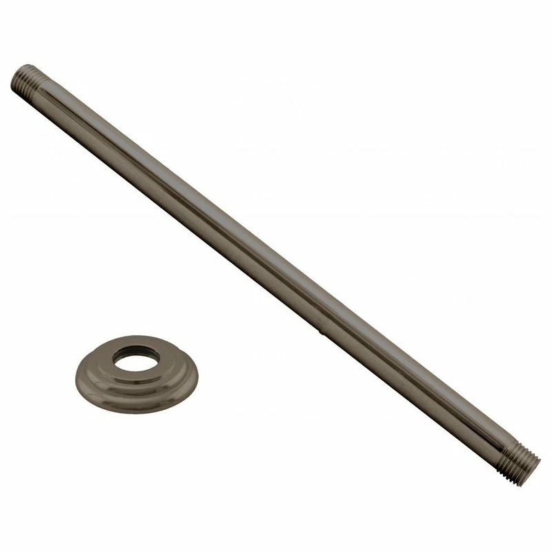 Use this plated, solid brass, 1/2 in. IPS, ceiling mounted shower arm, for long projection, ceiling mounted rain shower heads of all diameters. 19 in. long. Decorative, machined brass flange included. 1/2 in. x 19 in. ceiling arm and D3800 Heavy Duty Flange. Lead Free Brass Nipple.