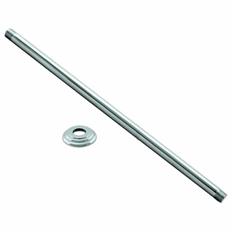 Use this plated, solid brass, 1/2 in. IPS, ceiling mounted shower arm, for long projection, ceiling mounted rain shower heads of all diameters. 36 in. long. Decorative, machined brass flange included. 1/2 in. x 36 in. ceiling arm and D3800 Heavy Duty Flange. Lead Free Brass Nipple.