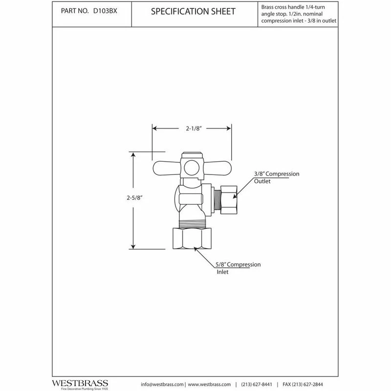 SKU: D105BX-07 Categories: Bathroom Fixture Parts, Bidet & Toilet Parts Tags: Angle stop, Sink, Sinks, Toilet, Toilet accessories, Toilet parts, Toilet products, Valve